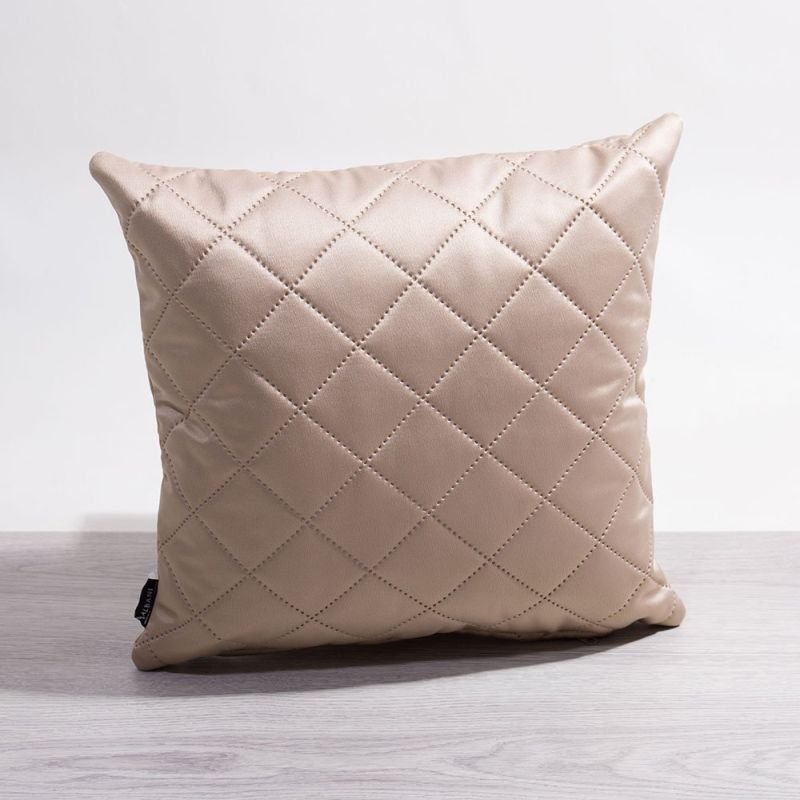 - Eine beige Kissenhülle aus 70 % Polyester/ 30 % Polypropylen ohne Inlett.