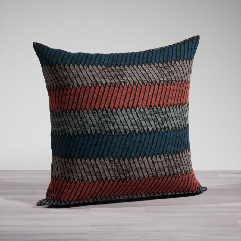 • Eine rot-graue Kissenhülle aus 59% Polyester und 41% Polyacryl ohne Inlett. Die Kissenfüllungen sind separat als Zubehör im Shop erhältlich.