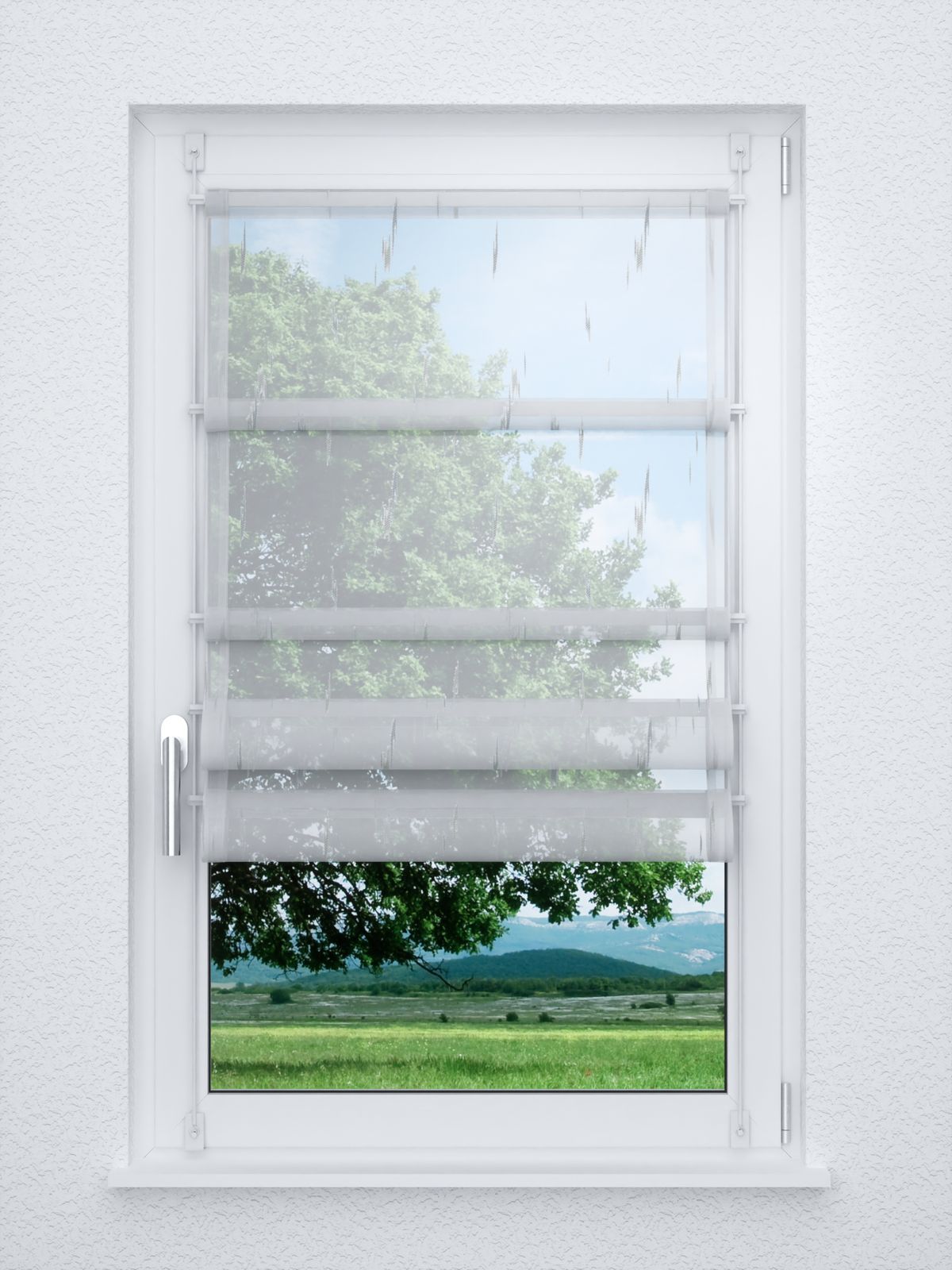 - Ein Raffrollo smart aus transparentem Stoff, 100% Polyester - individuell nach Ihren Wunschmaßen gefertigt. Geliefert wird der Artikel inklusive Befestigungsmaterial.