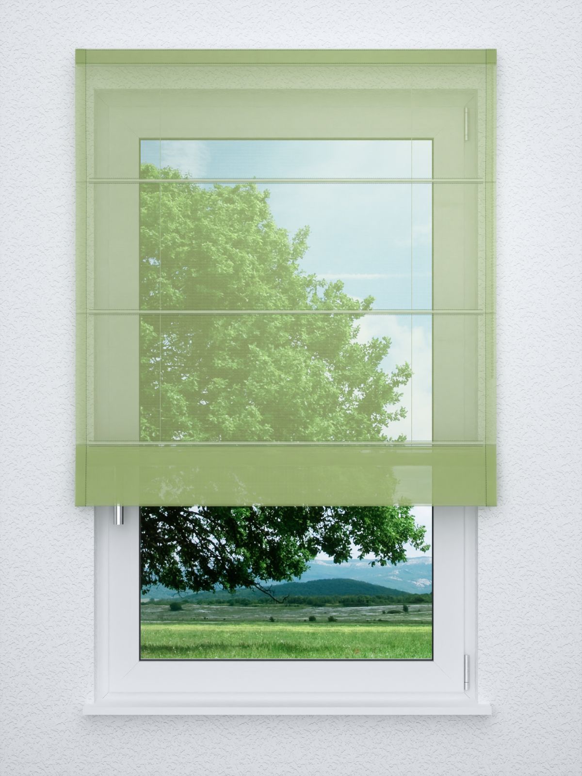 - Ein Raffrollo classic aus transparentem Stoff, 100% Polyester - individuell nach Ihren Wunschmaßen gefertigt. Geliefert wird der Artikel inklusive Befestigungsmaterial.